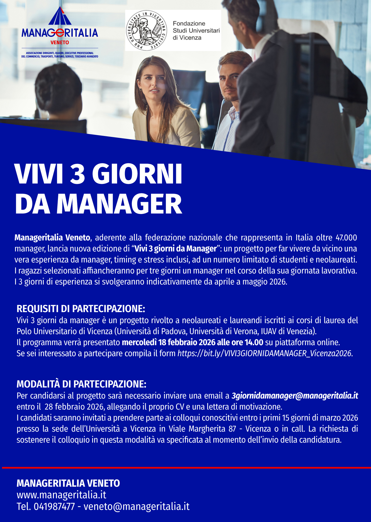 Gli elevati standard di qualità dei percorsi di studio proposti e attivati a Vicenza e la coerenza con i fabbisogni di competenze delle imprese del territorio garantiscono un eccellente livello di formazione e eccellenti prospettive occupazionali per i laureati.
