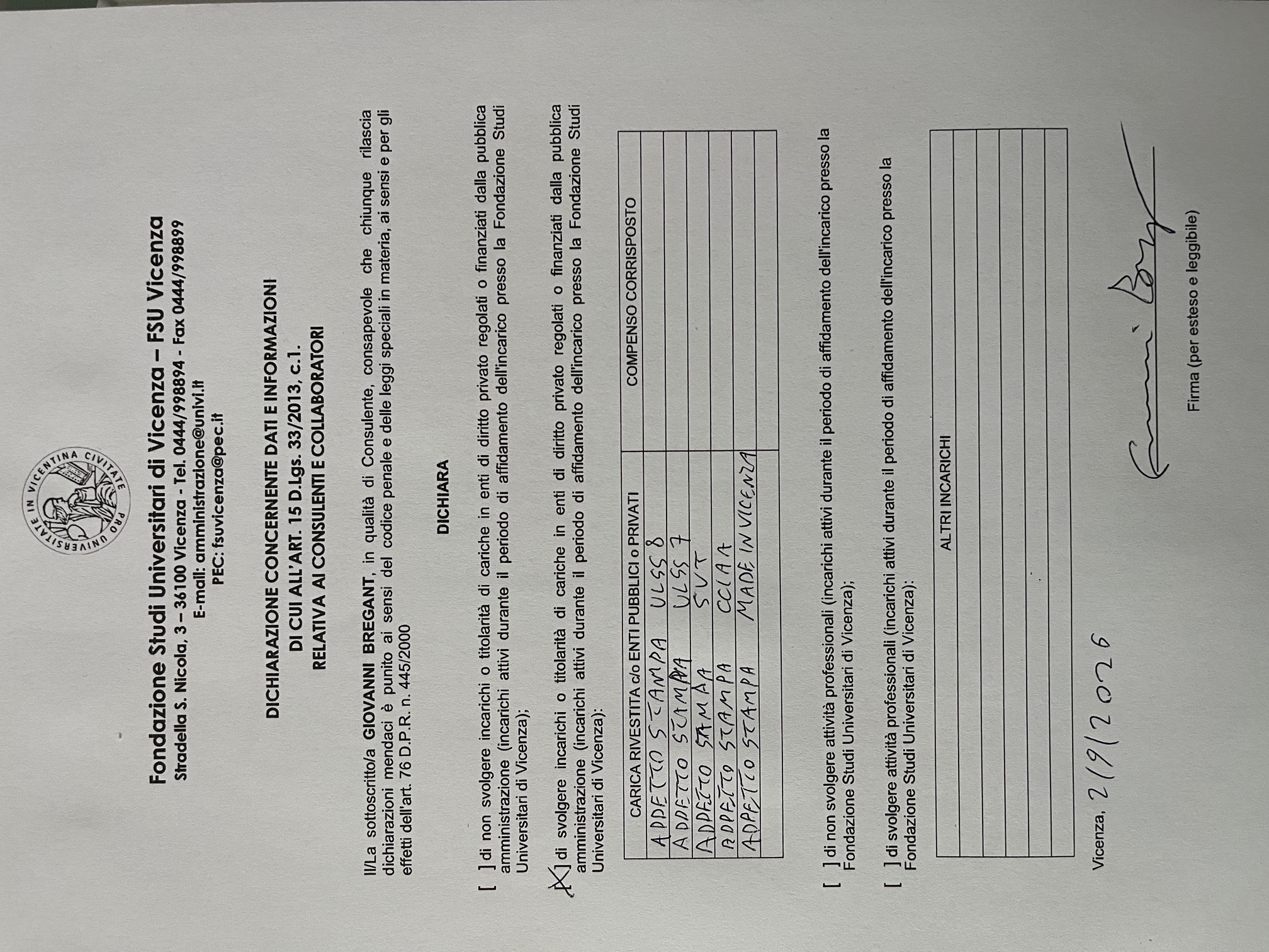 Bregant Giovanni          Dettagli   CV  Dichiarazione  - Attivo