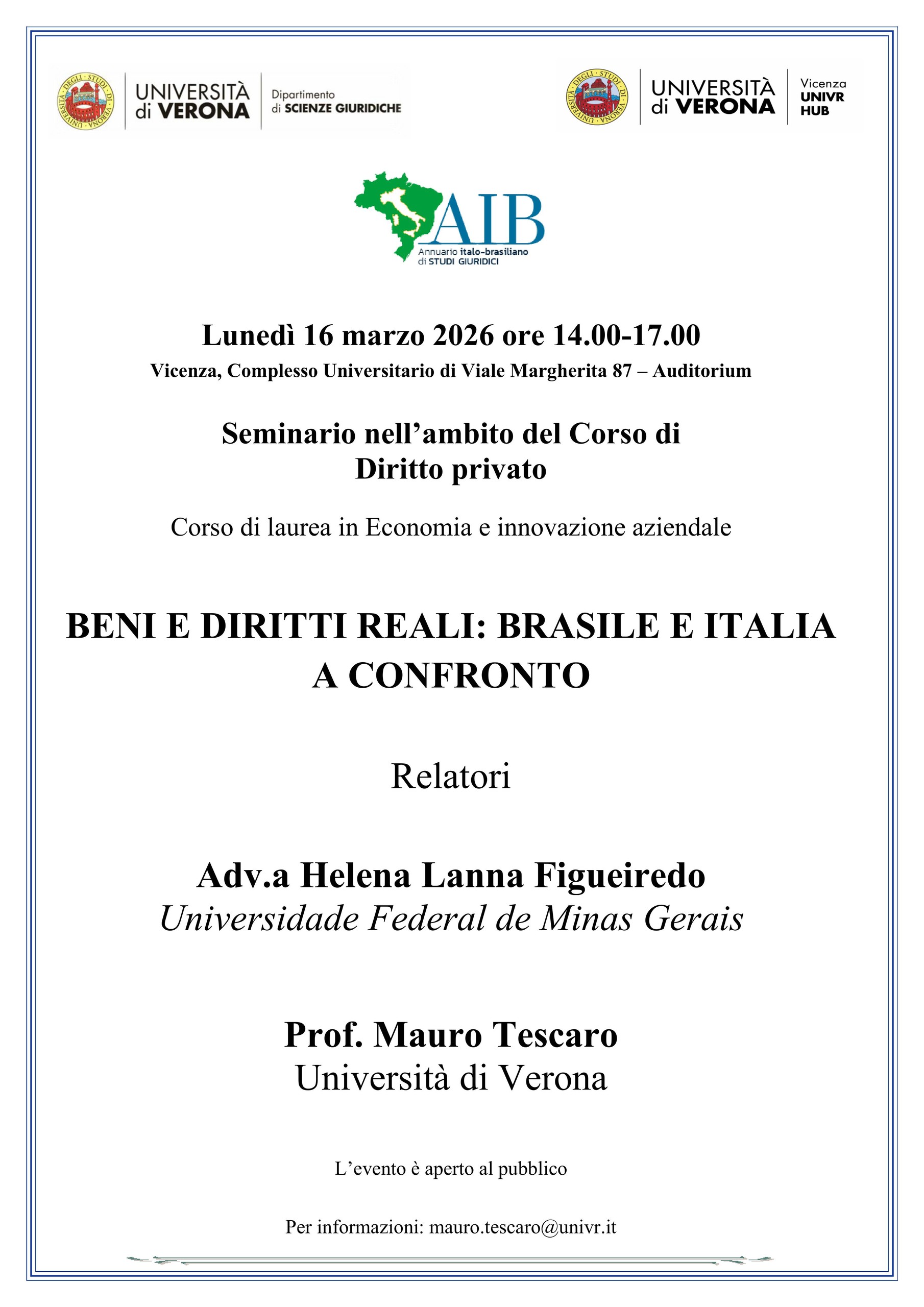 BENI E DIRITTI REALI: BRASILE E ITALIA A CONFRONTO- sede di Viale Margherita